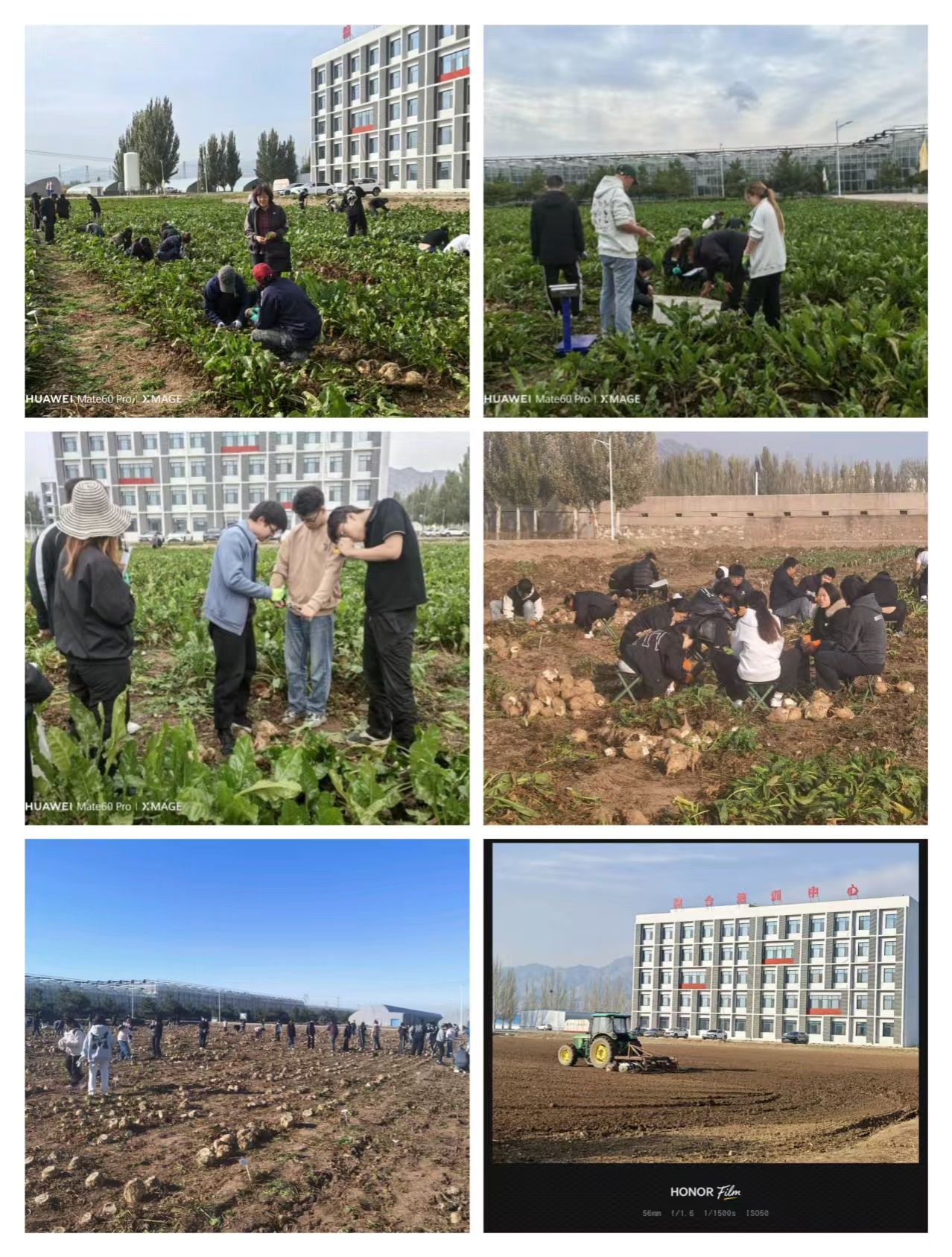 本年度的甜菜试验示范,是科教融汇和产教融合的完美体现。学生在劳动教育与植物营养实验和农事操作实训课程中,甜菜整个生育期进行了全程参与;学院科技创新团队青年项目与科技园区实训经费的资助下,虽然甜菜遭遇了大雨侵袭与褐斑病困扰,但是科研团队通过精耕细作与科学药剂调控,成功克服不利环境影响,实现了丰产目标。甜菜于10月20日全面完成收获,亩产量稳定在5吨左右。受土壤水分条件影响,甜菜含糖率较往年略有偏低,介于15%-16%之间,但相较于土默特右旗整体生产水平,其产质量仍处于领先地位。